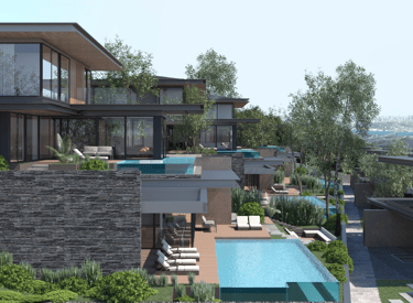 30.000 m2'lik arazi içerisinde sonsuzluk havuzları, rolling roof detayları işveren ile paylaşıldı.