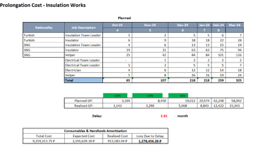 İlerleme raporları ve maliyetlere istinaden, gerçekleşme analizleri, çalışılabilir alan hesaplamaları ve sebepleri işveren ile paylaşılmıştır.